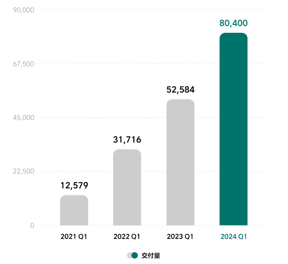 理想汽车指出,一季度车辆销售收入环比下滑主要是受春节假期相关的季节性因素影响,以及3月份销售订单不及预期,车辆交付量减少所致。与2023年第四季度的131,805辆相比,一季度理想汽车交付量环比跌幅达39%。