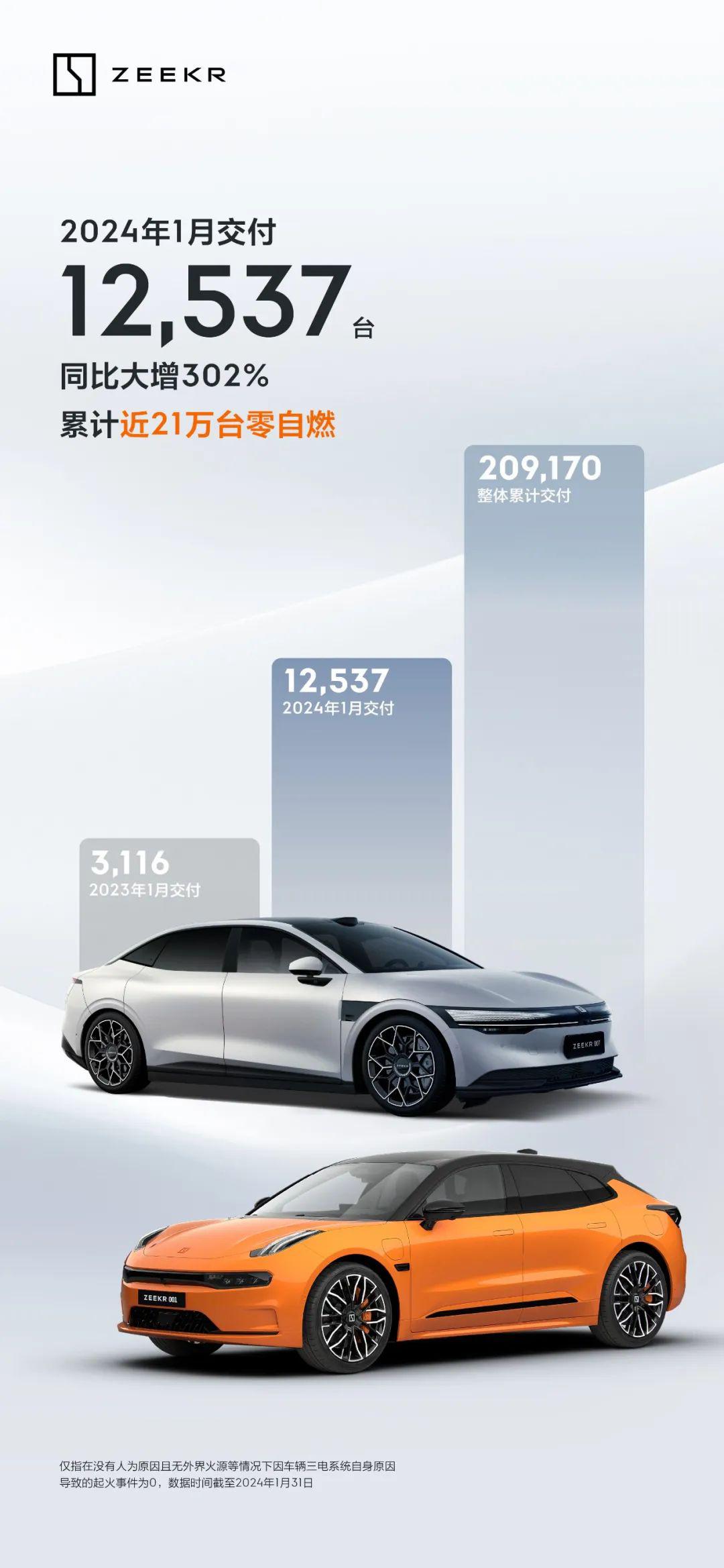 2月1日,极氪汽车通过官微宣布,1月公司全系交付新车12537辆,同比增长302%。其中,新车型极氪007上市即交付,带来明显的拉动效果,实现新年开门红。