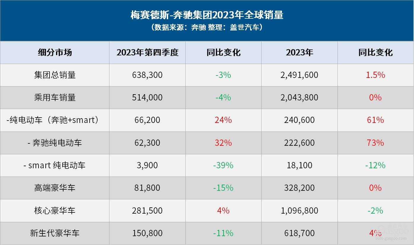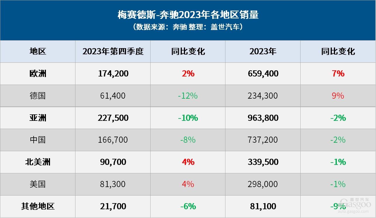 2023年,梅赛德斯-奔驰在欧洲的销量同比增长7%,达到65.94万辆,其中在德国本土市场的销量同比增长9%,达到23.43万辆。