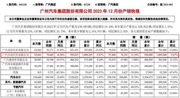 值得注意的是,此前也曾有北京现代跨国百万辆门槛后掉头急转直下、东风日产苦守百万辆多年后依旧失守的前车之鉴,这些都值得广汽丰田吸取经验教训。但不必过于担忧的是,广汽丰田仍有殷实的“家底”,2023全年销售950008辆的成绩依旧领跑“四小花旦”,随着新车的改款上市,矩阵配置合理的广汽丰田也有机会再次冲击百万辆大关。