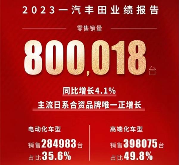 一向稳重的一汽丰田,在“牛市”中或许从不起眼,但在弱市中却能迈着稳健的步伐继续向前,就显得难能可贵。2023年,一汽丰田共售出800018辆,同比增长4.1%,是“四小花旦”中唯一实现销量正增长的公司。下一步,一汽丰田还需着力打造细分市场中的爆款车型,进而推动自身实现跨越发展。