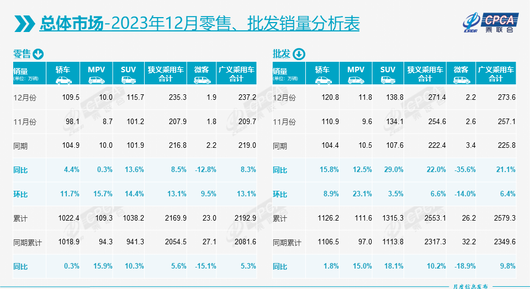 因越来越多国内消费者倾向于选择SUV,新能源轿车创造的增量远不及传统燃油轿车损失的体量,2023年6月以来SUV的零售月销一直略高于轿车的情况,使得全年SUV也以15万辆的优势成为国内的第一大细分市场。而且轿车的同比增幅也仅为0.3%,远不及SUV的10.3%。
