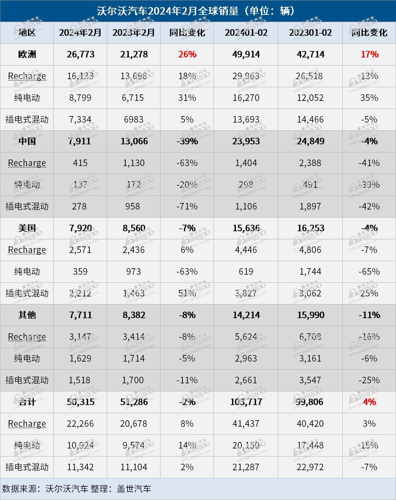 就地区来看,沃尔沃汽车2月份在欧洲的销量依然强劲,同比劲增26%达到26,773辆。其中电气化车型的销量同比增长了18%,而纯电动车的销量增长了31%。